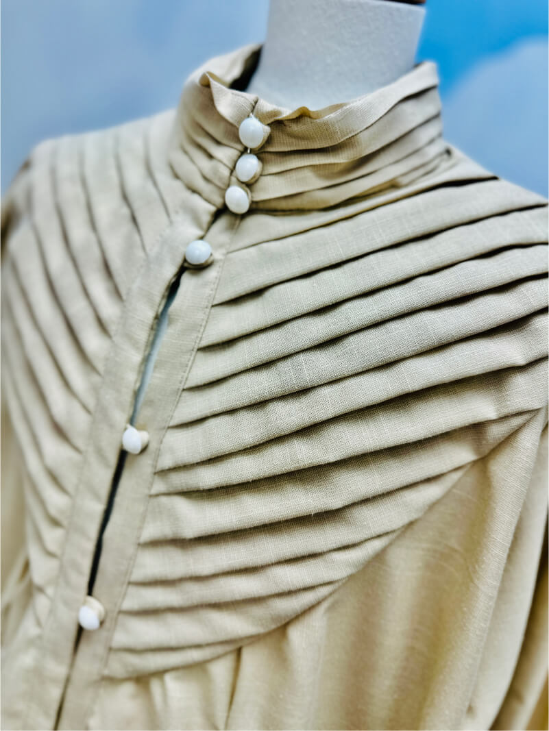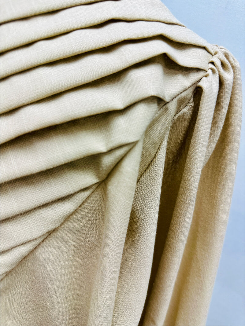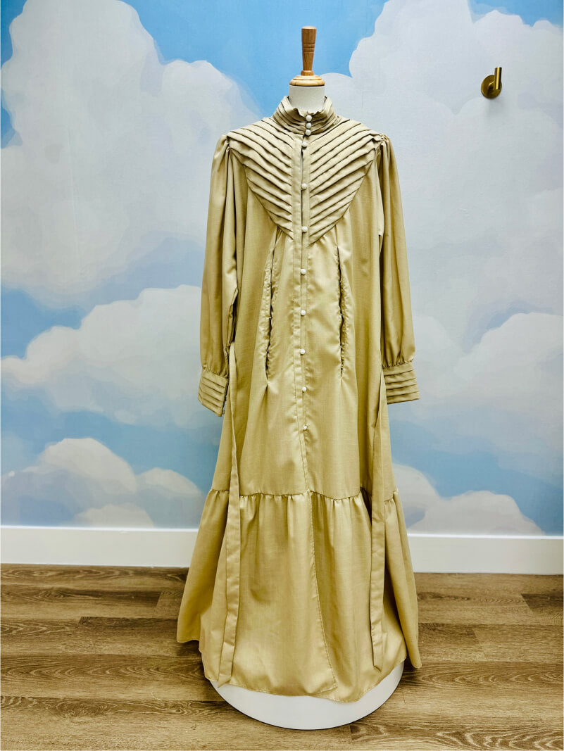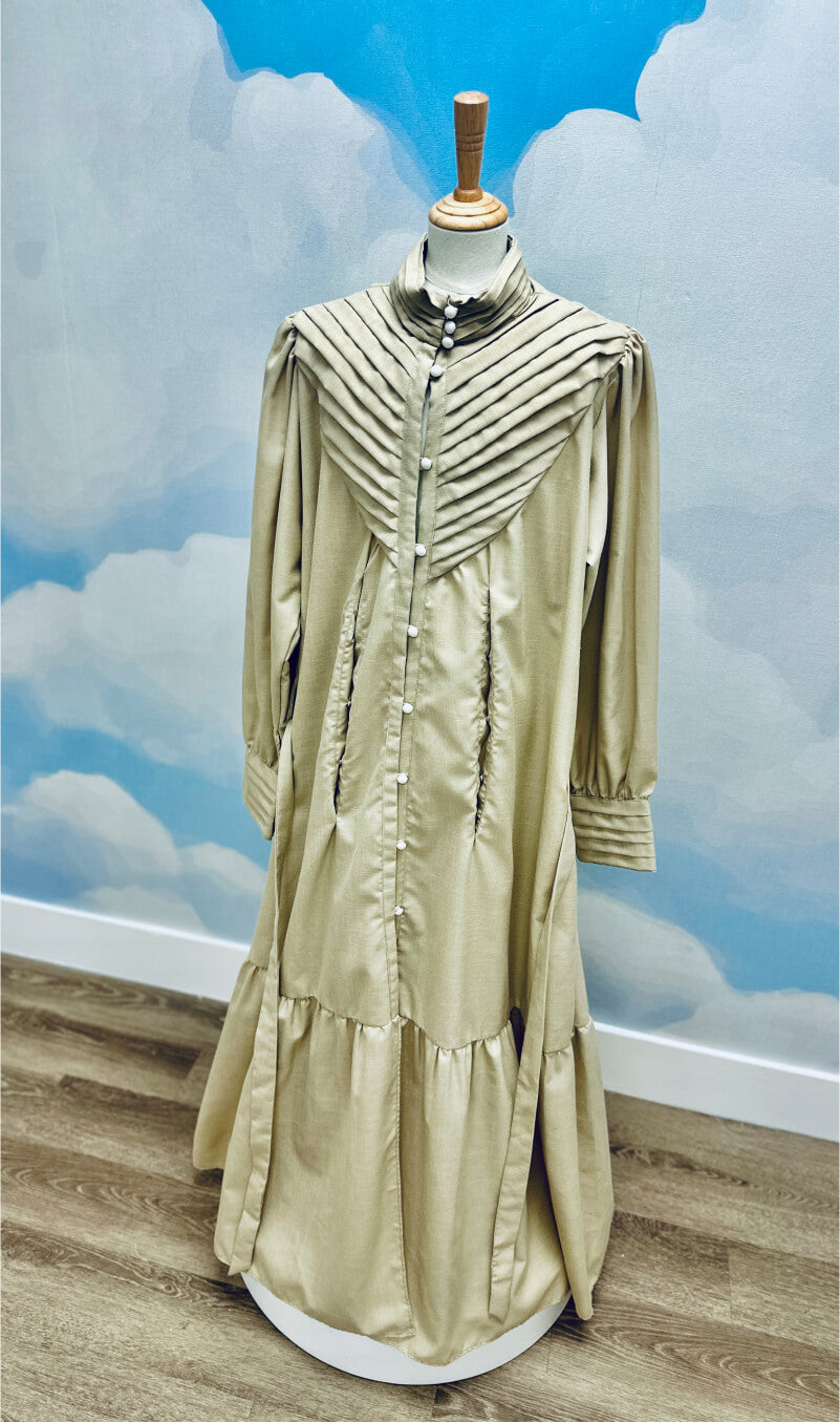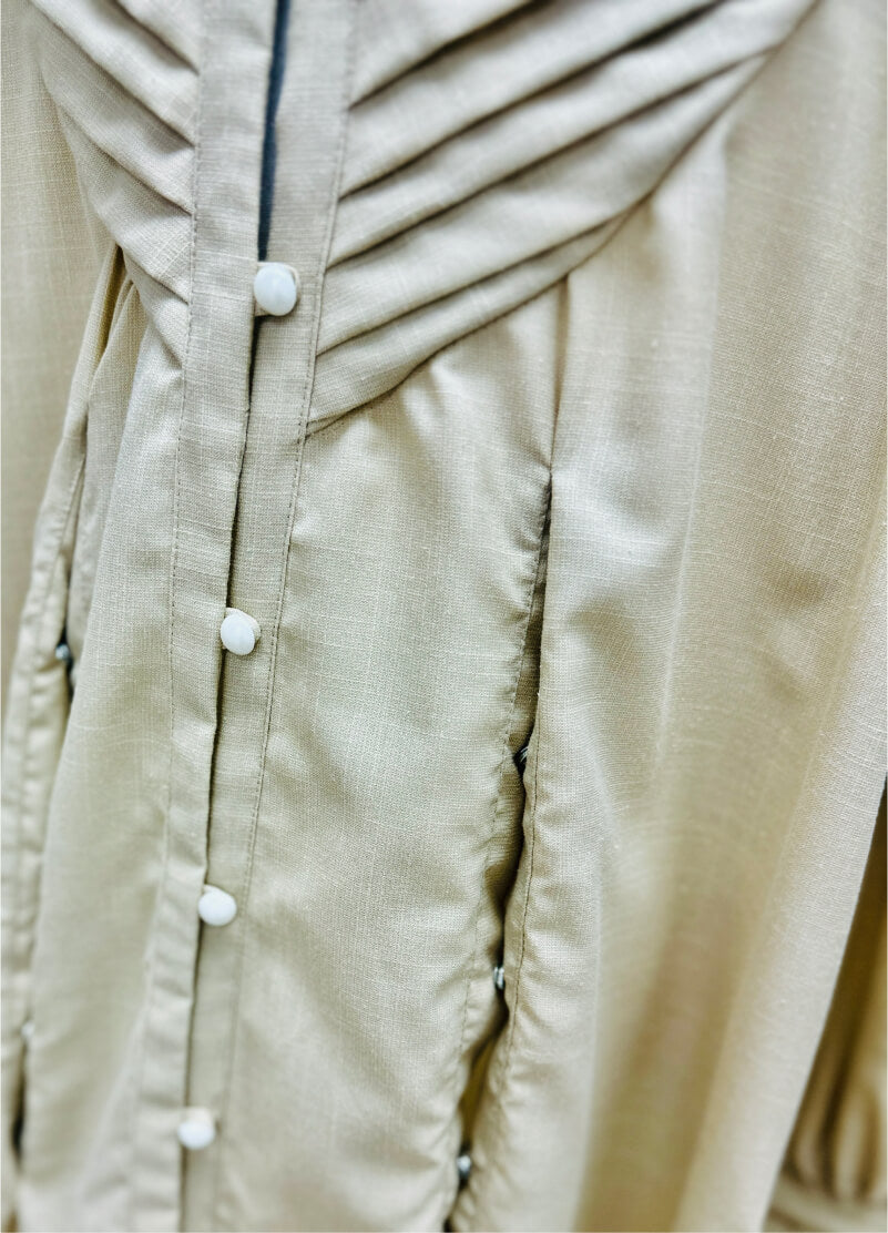 Premium Long Sleeve Brown/Sand Maternity Robe: 50% Linen & 50% Cotton