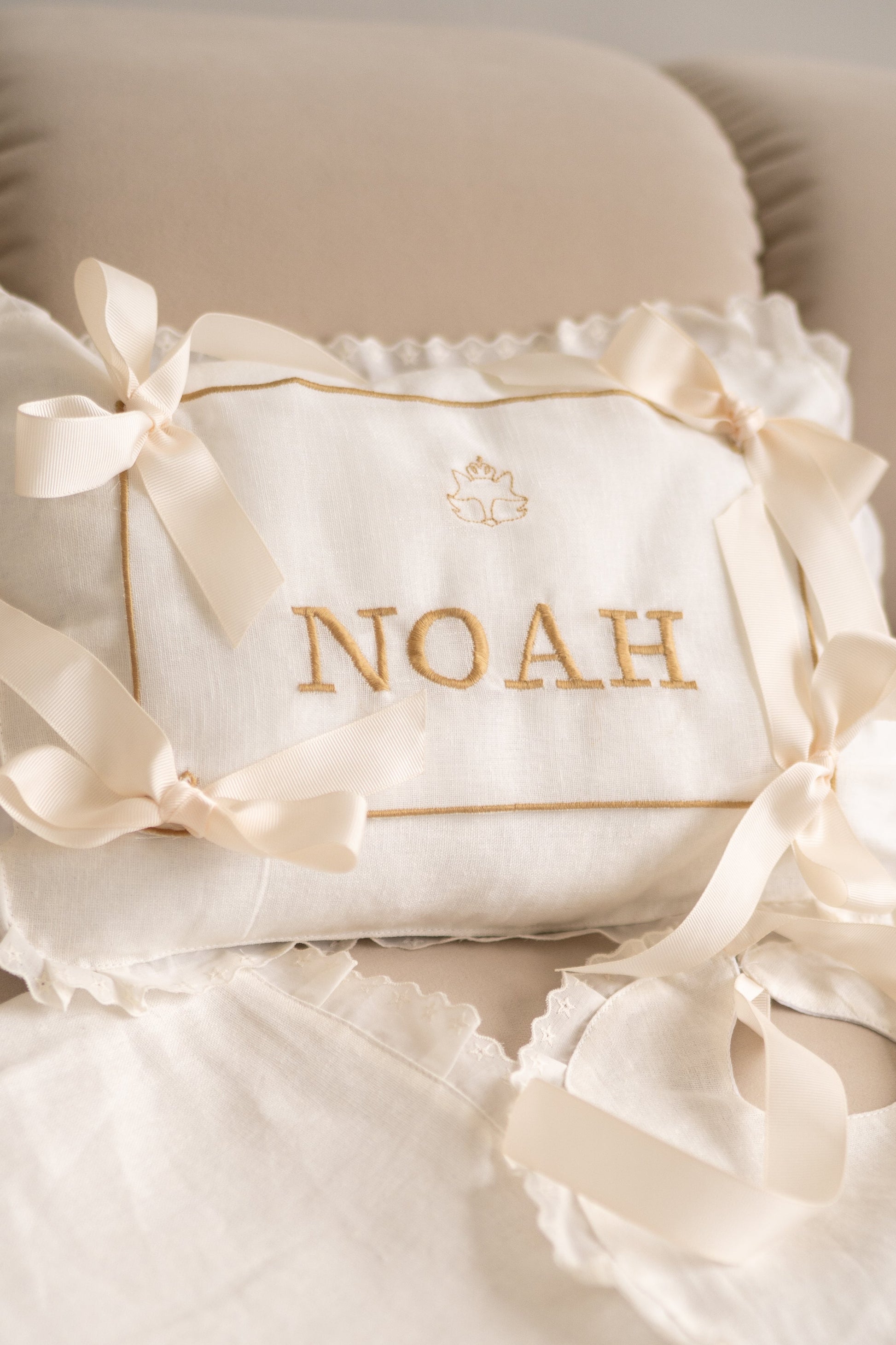 Pillow personalized with the baby's name With 1 replaceable part.