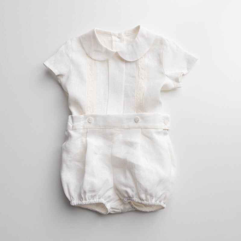 • Bib with golden embroidered cross – Adds a meaningful touch to the outfit.