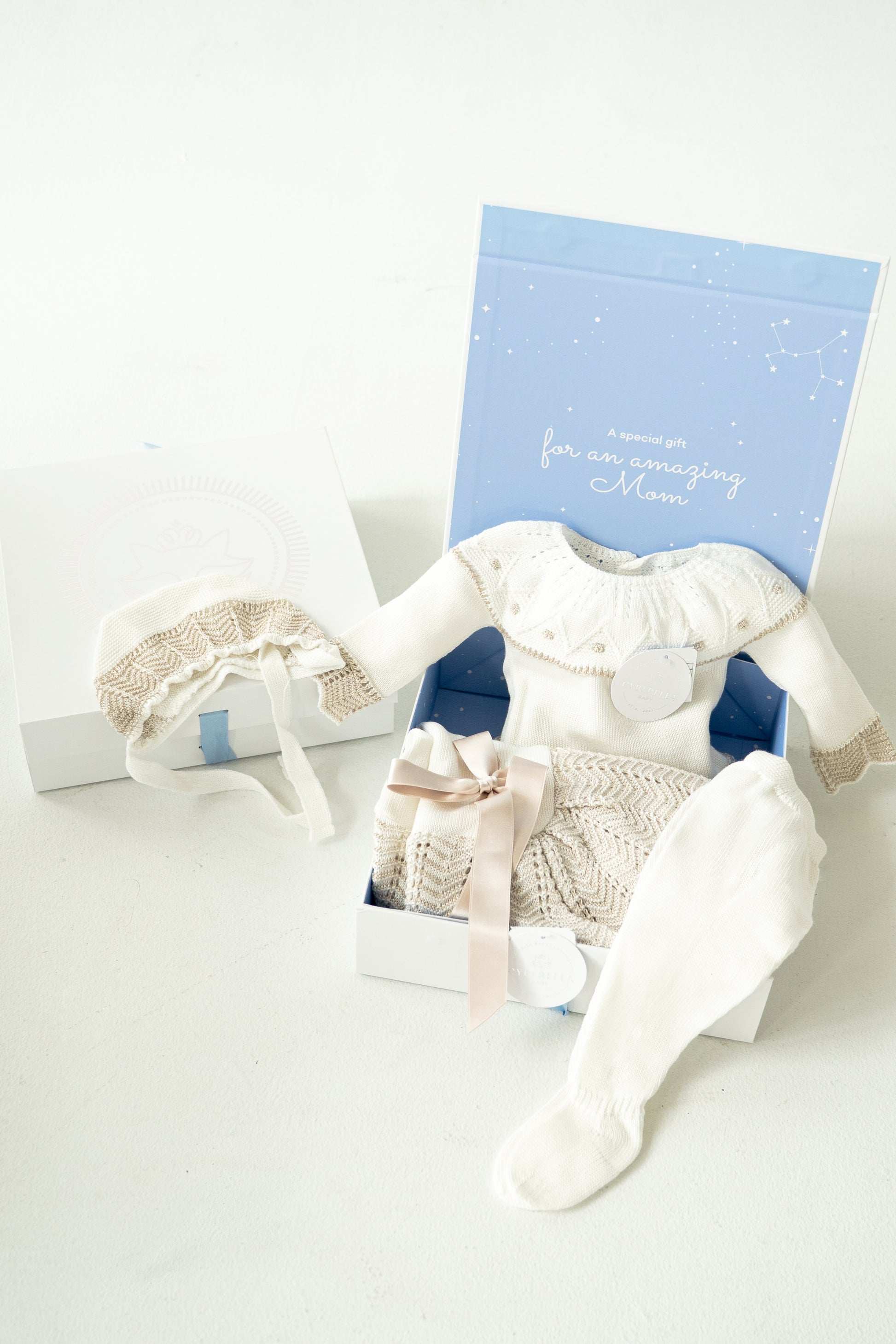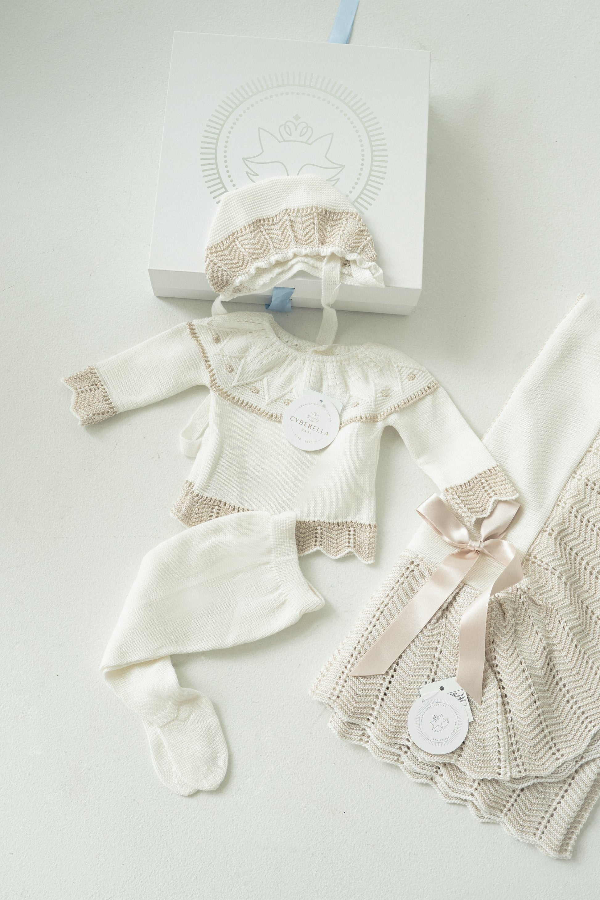 Wrap your little one in cozy elegance with our Latte Cloud baby set. Crafted with the finest materials, this set includes a soft warm blanket, a snug sweater, comfortable pants, and an adorable mini hat. The delicate latte color adds a touch of warmth, while the lightweight fabric ensures comfort for your baby all day long. Perfect for special occasions or everyday snuggles, this set offers a timeless, sophisticated look.