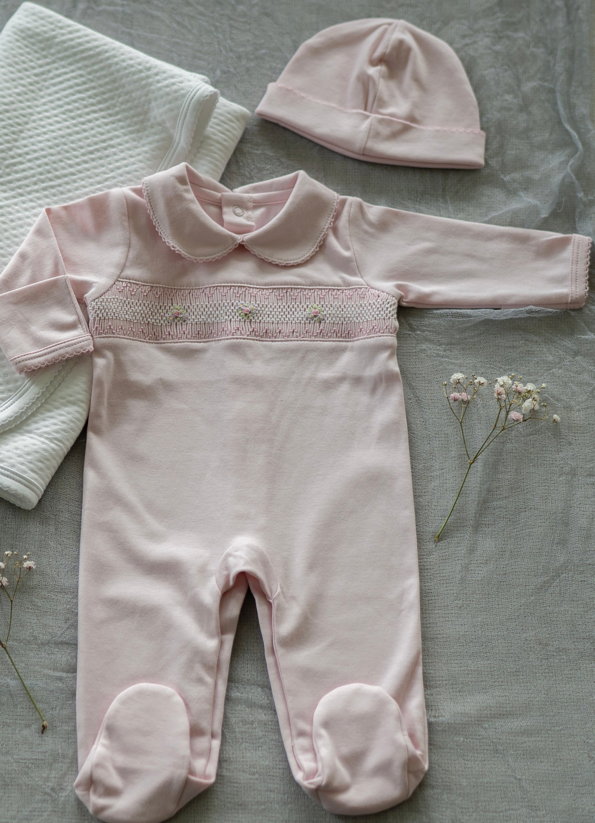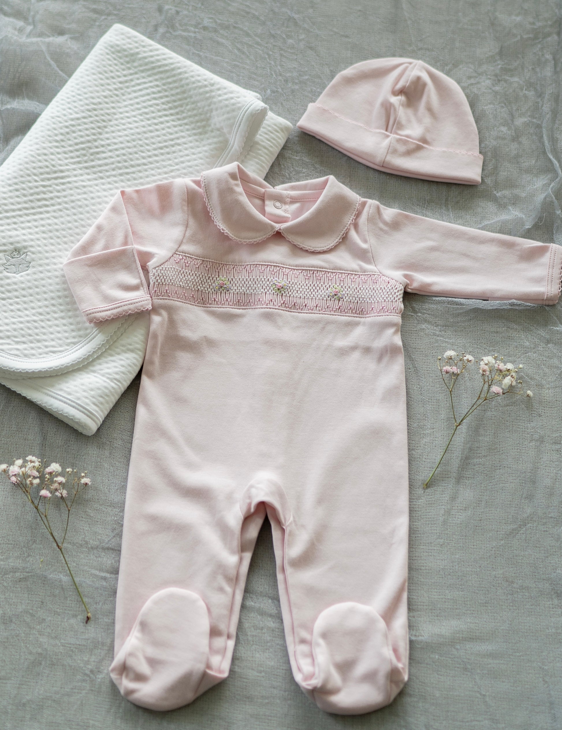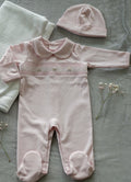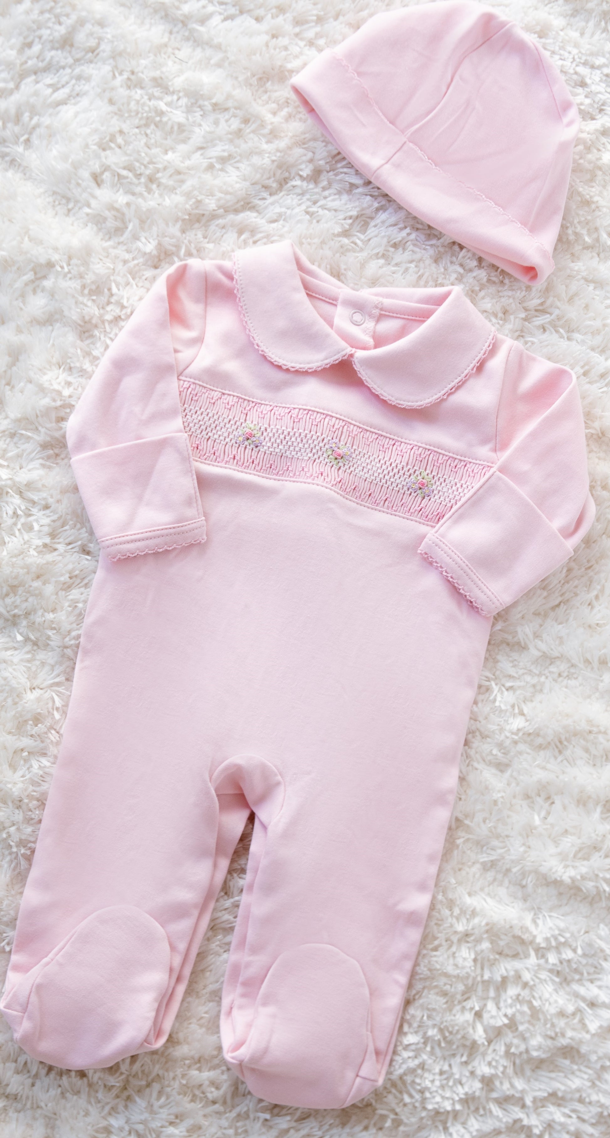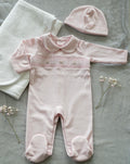 Pink Pima Cotton Smocked Romper with Hat | Soft Baby Outfit for First Wear