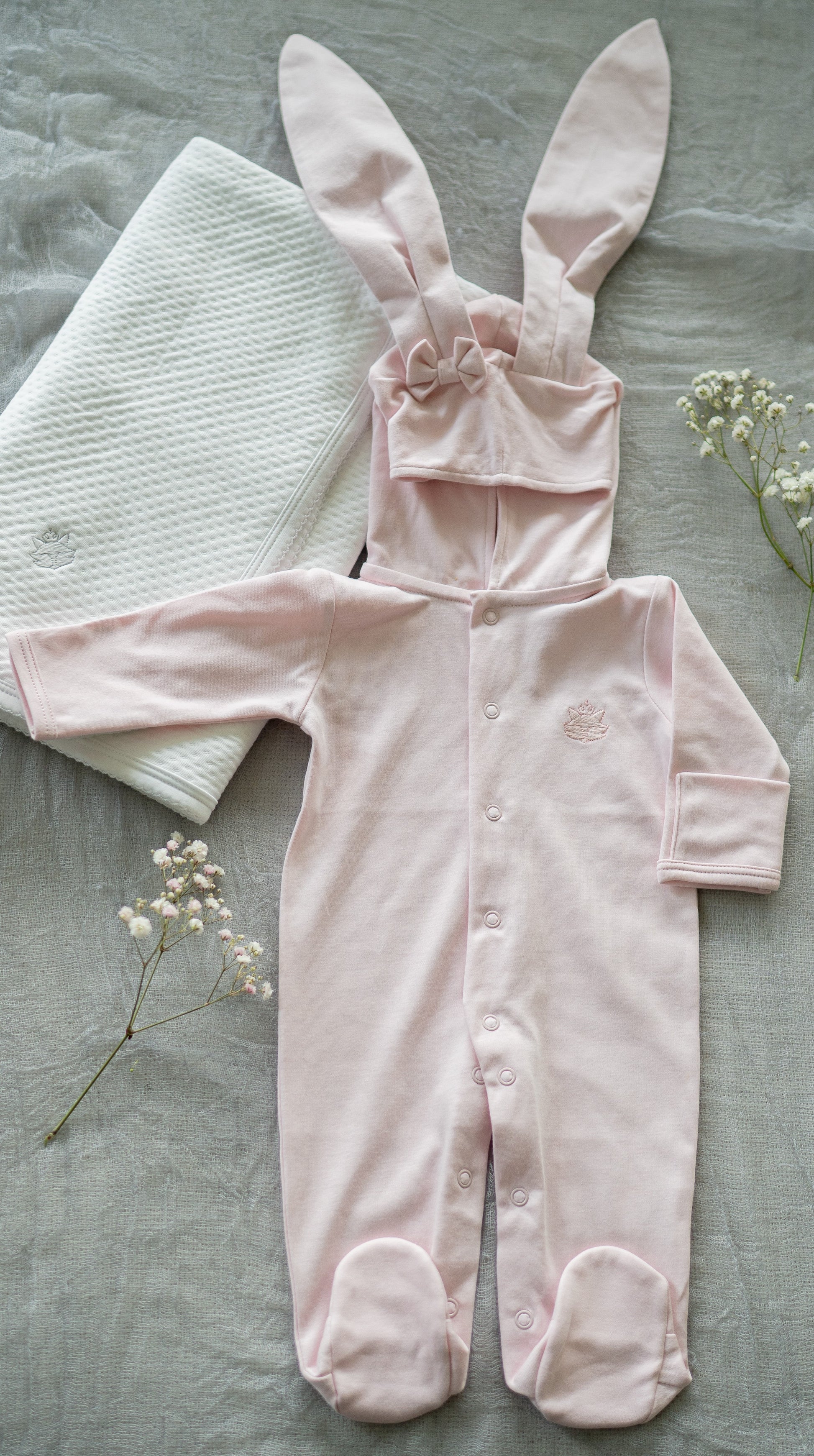Pink Pima Cotton Baby Romper with Bunny Ears | Adorable Infant Outfit