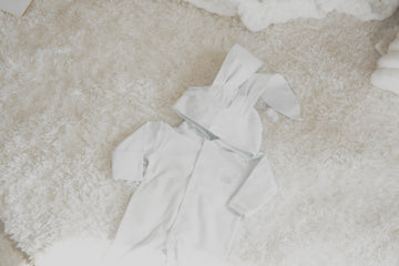 White Pima Cotton Baby Romper with Bunny Ears | Adorable Infant Outfit