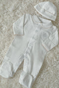 Available in a classic white hue, this romper is easy to pair with other accessories, making it a versatile addition to your baby’s wardrobe.