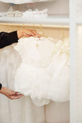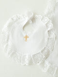 This elegant white baptism bib is the perfect accessory for your baby’s special day. Made in Spain with soft, high-quality fabric, it features delicate eyelet lace trim and a beautifully embroidered gold cross at the center. Designed to keep your little one’s outfit pristine while adding a refined, ceremonial touch.